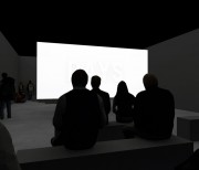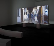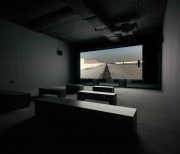 The two versions – a day version and a night version – are projected at the same time, on the two sides of the screen built specifically for the exhibition space.