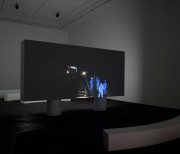 HD video with sound, double synchronised projection on the two sides of the screen. Two amplifiers, 4 speakers