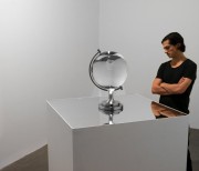 Objet d’attraction et de fascination, l’œuvre incite au jeu, au déplacement. Elle se pratique, et fait du visiteur un expérimentateur qui gravite autour. La sphère, en absorbant puis renvoyant une image inversée de nous-mêmes et du lieu, met en corrélation différents points de l’espace. Elle fait de son contexte un monde, qui évolue sans cesse au gré des points de vue. À la manière d’une loupe, elle offre de la réalité une vision hypertrophiée et fragmentaire, où la partie devient le tout. Cette sphère, finalement, produit des univers. Elle fonctionne comme un globe oculaire - qui s’empare d’un champ du réel, en inverse l’image, puis le livre à l’interprétation, ou à l’imaginaire. Articulant une lentille, un miroir, et la lumière, cet objet est aussi de nature photographique. Il est dans tous les cas un capteur, un espace de projection et d’invention où se faire son cinéma.