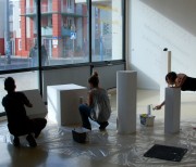 For the exhibition at l’Ecole des Beaux-Arts de Montpellier the artists answers to the invitation of Yann Mazéas (head curator) and chooses to occupy the exhibition space as his temporary workshop. As in the past, he uses the school as a tool, turning the exhibition space into a place of production and reflection. The space has been open to the public for 23 days. The artist occupied the space permanently. During this time Melik Ohanian presented multiple works in ways that are specific to the exhibition. During the day, he invites the students and the public to go through his archive of films, photos, soundtracks, and writings of the past 20 years in order to re-organize them in a collaborative way. This experience of re-displaying and re-interpreting the documents that testify Melik Ohanian’s art practice has resulted in a publication working as a retrospective of his work. During these 23 days, invited lecturers hosted discussions and comment on the artist’s practice to date.