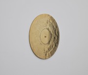 An engraved brass circle Yellow Memory — Learn, 2014 plays with the possible semantic combinations between the verbs to say, to see and to think. This ritornello in three-quarter time repeats the affirmative and negative phrases from the speech in a play on tension between existential and material dimensions.