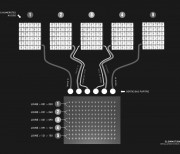 Ce dispositif, qui déploie une méthode de code archaïque, constitue selon l’expression de l’artiste un « ordinateur préhistorique ». Il en possède les éléments de base - code, signal électrique, transcription arithmétique - et fonctionne par analogie avec le système binaire sur l’alternance de deux états : allumé ou éteint. En codant puis numérisant le message qu’il compose, le visiteur agit lui-même comme un processeur - et semble avoir pénétré un circuit simplifié, agrandi, et ralenti, où les cases carrées séparant les ampoules font figure de pixels hypertrophiés.