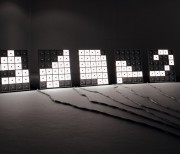 Slowmotion, From Slave to Valse is an installation with five light panels hooked up to a control console by electric cables. The artist invites visitors to use outdated computer equipment to produce letters, words, and symbols on the panels set up in the space. The visitor is then invited to write down the numbers of the buttons they used in a notebook, creating a numerical code that becomes a practical memory of the exhibited work.