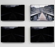 The installation Return From Memory consists of four large light boxes. The four photographs displayed in the light boxes track the image of a man moving across a wooden suspension bridge in Mexico. El Puente d'Ojuela, Mapimi, Durango. Animated light times the character’s progression through the distance of the landscape (at 8-second intervals per image). The temporality created by the repetitive presence and successive absence of images, invites visitors to question their own presence through the experience of time effects in our perception of images.